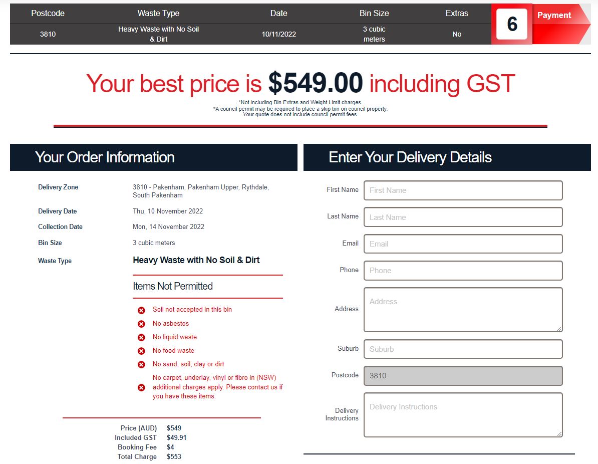 Our simple three-step process will find the best waste solution for you from our wide selection of bins for hire, considering your postcode, waste type, and budget parameters. Our skip bins are the best choice for waste and rubbish; five types of bins are available for your specific waste. This ensures the waste transfer station will accept your waste without any issues.
